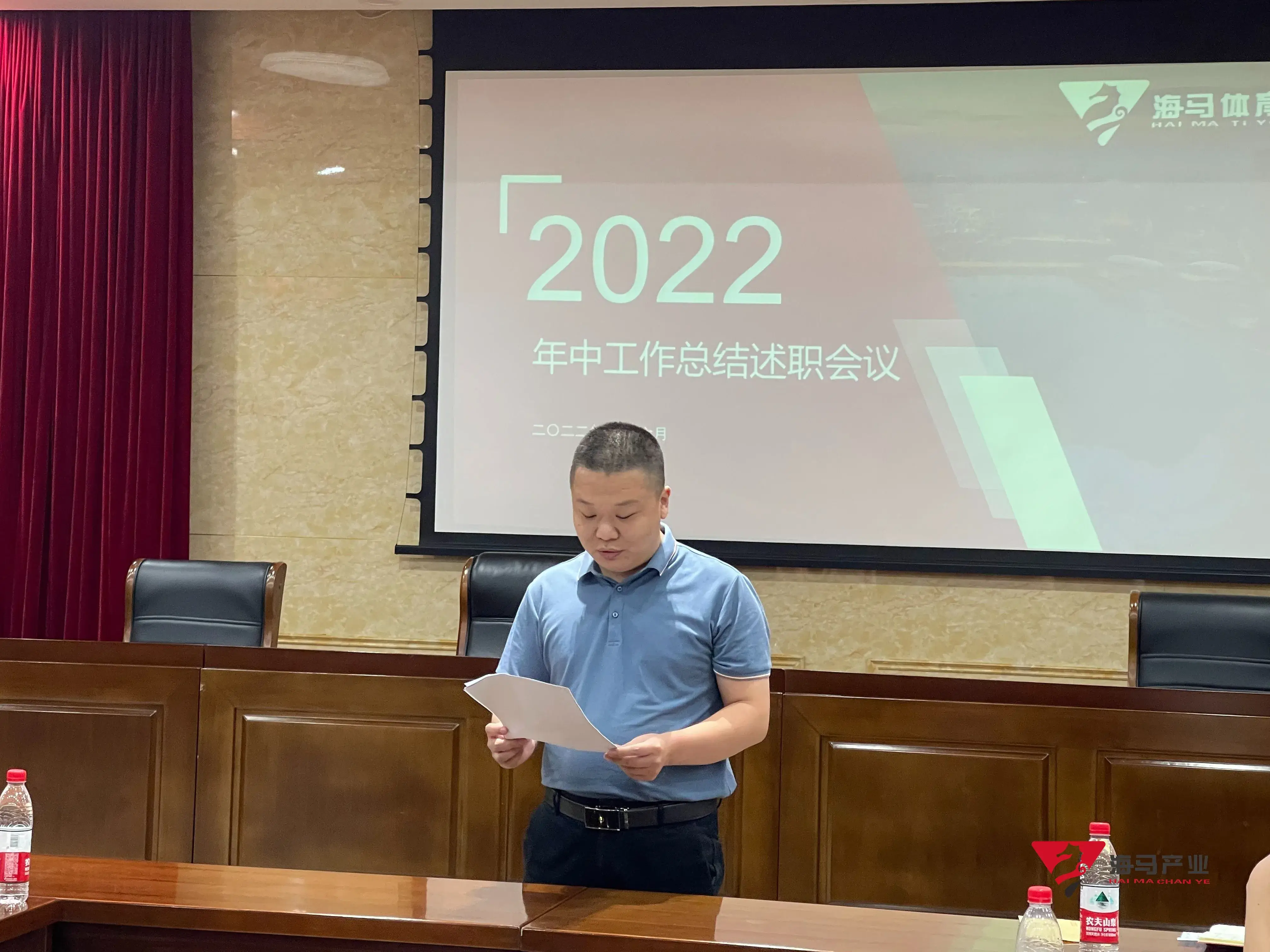 2022年6月29日下午,星空体育文化产业集团在山东省体育中心二楼会议室召开年中工作总结述职会议,会议对上半年工作成果进行了总结汇报,并就下半年重点工作进行部署。总经理王海民出席了本次会议。会议由综合管理部负责人王永健主持。